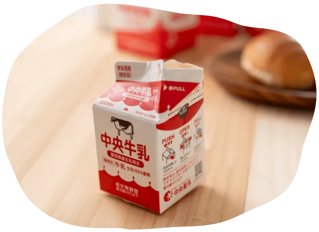 子ども達の意見を集めて選ばれたこだわりデザインの紙パックでの提供がスタート。衛生面や環境面に配慮した形へと変わり、より安心して飲めるようになりました。